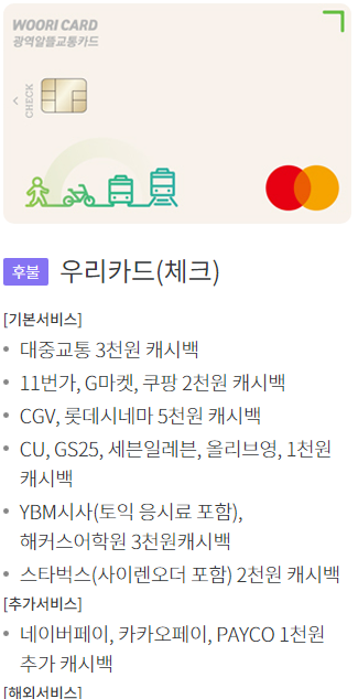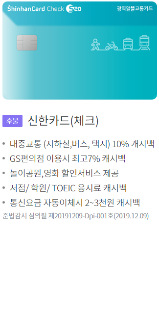 광역 알뜰교통카드 후불 및 체크카드의 경우
